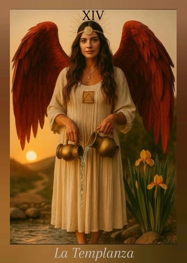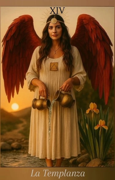 La Templanza simboliza armonía, equilibrio y sanación. Es la energía que suaviza extremos, calma la mente y alinea el corazón. Esta carta te recuerda que estás entrando en una etapa de serenidad, donde todo se ordena de manera natural. El flujo de energía comienza a estabilizarse y tus decisiones se vuelven más sabias. Es un momento para nutrirte, regenerarte y confiar en el proceso.
