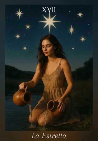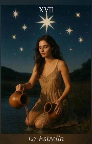 La Estrella es una de las cartas más bellas del tarot. Representa esperanza, guía espiritual, inspiración y protección divina. Estás entrando en una fase donde la energía se purifica, se ilumina y se renueva. Tus deseos comienzan a alinearse con el universo y las puertas se abren con suavidad. Este arcano te recuerda que estás siendo guiado hacia un camino lleno de luz, armonía y abundancia.