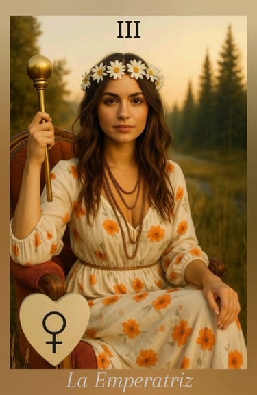 La Emperatriz es fertilidad, creatividad y expansión. Anuncia momentos de crecimiento personal, emocional o incluso material. Todo lo que toques ahora puede florecer si lo nutres con cariño y constancia. Representa abundancia, armonía y belleza en tu entorno.