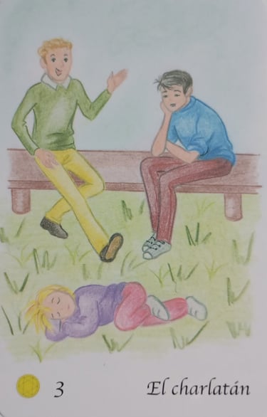 La carta de El Charlatán aparece cuando en tu sistema familiar hubo necesidad de aparentar conocimiento, habilidades o seguridad para ser visto, aceptado o protegido. No se trata de engañar por malicia, sino de una estrategia de supervivencia y pertenencia frente a la sensación de que solo demostrando algo se podía sostener un lugar.