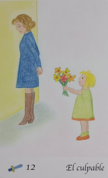 Sanar esta carta implica devolver la culpa a quien corresponde, sin juicio ni rechazo. Sanar El Culpable es decir internamente: “Ahora veo tu dolor y tu destino. Te honro. Yo dejo contigo lo que es tuyo y tomo mi vida libre.” La culpa no se sana pagando, se sana reconociendo.