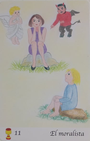 La carta de El Moralista aparece cuando en tu sistema familiar el amor estuvo condicionado al comportamiento correcto. No surge de una verdadera ética interna, sino de una lealtad profunda a normas que garantizaron la pertenencia. Ser bueno, correcto o ejemplar fue, en algún momento, una forma de sobrevivir.